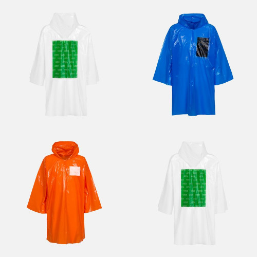 Дождевик-плащ с капюшоном и длинным рукавом из плотного полиэтилена высокого давления (ПВД).